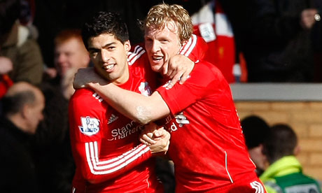 El verdadero jugador del partido Luis Suarez (izquierda), no Dirk Kuyt (derecha). (Foto:The Guardian)