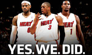 El tener a jugadores como LeBron, Wade, y Bosh en el mismo equipo es algo inaudito realmente. Ya había pasado que varias estrellas se juntaran en un mismo equipo, pero esto pasaba principalmente al final de sus carreras. Nunca había pasado que tres de los mejores jugadores de la liga estuvieran en su mejor momento en el mismo equipo. La NBA es una liga en la que es claro que se necesita a dos estrellas para ser campeón. Un Batman y un Robin. Jordan tenía a Pippen, Kareem a Magic (y luego al revés), Bird a McHale, Shaq a Kobe y ahorita Kobe a Gasol. Eso es normal, hasta es lo que se busca, pero tener a tres súper estrellas es algo completamente nuevo, sobre todo porque son jóvenes y podrían jugar por lo menos 5 años juntos.