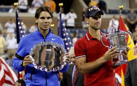 El siguiente enfrentamiento es la final del US Open. Nadal tiene que defender el título que gano al mismo Djokovic el año pasado. En esa final, Nadal dio un gran partido para ganar en cuatro sets con parciales de 6-4, 5-7, 6-4 y 6-2. Se espera que esta final sea más reñida que la del 2010. El serbio empieza atacando el revés de Nadal, lo encajona en el fondo de la cancha. Nadal intenta cambiar el ritmo jugando algunos tiros altos de revés con mucho top spin sobre el revés del serbio, intenta disminuir la velocidad del juego del serbio, tirando su slice de revés. Nadal está intentando algo nuevo, no quiere caer en el juego de Djokovic. Sin embargo, el serbio ajusta su juego y empieza nuevamente a dominar el fondo de la cancha. Rápidamente se va dos sets arriba: 6-2 y 6-4. Todo parece indicar que va a ser una final de tres sets. Sin embargo, Nadal no se va a ir tan rápido y forza la muerte súbita en el cuarto set, ganándola con autoridad por 7-3. Se espera que continúe la reacción de Nadal, pero Djokovic aprovechando su gran devolución rompe rápidamente el servicio de Nadal retoma el control del partido y no lo suelta para ganar el set 6-3 y coronarse por primera vez campeón del US Open.